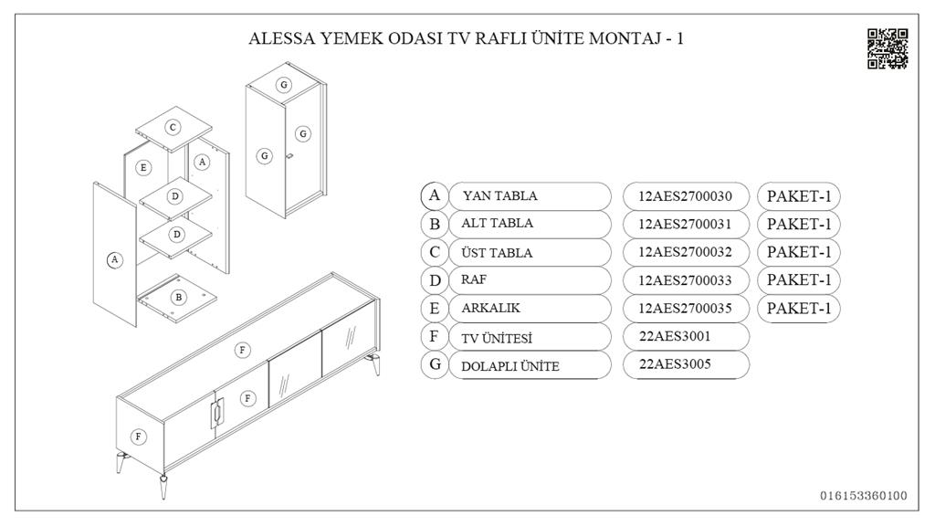 12AES2700031FYFY, Dlp. Raf Üni Alt Tabla/Alessa Gri
