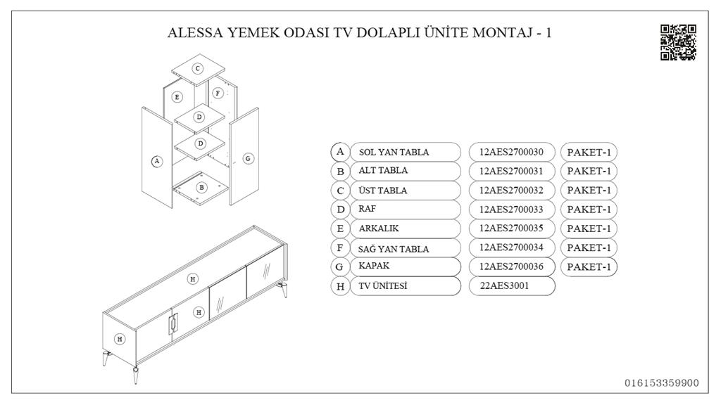 12AES2700031FYFY, Dlp. Raf Üni Alt Tabla/Alessa Gri