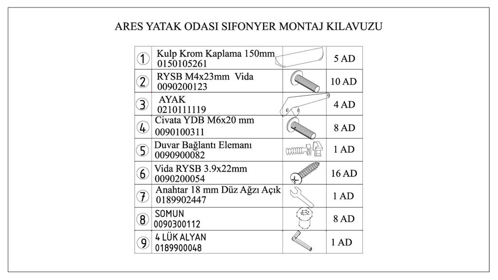0090900082, DUVAR BAĞLANTI EKİPMANI TEKLİ