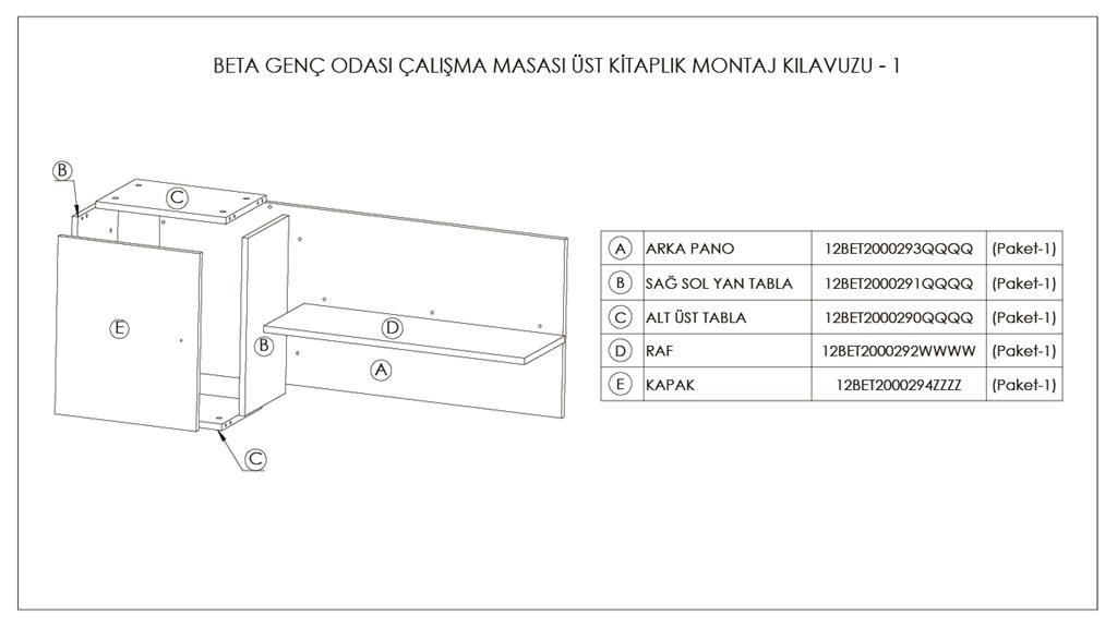 12BET2000293PDPD, Ç.Mas.Üst.Kit. Arka Pano/Kumtaşı