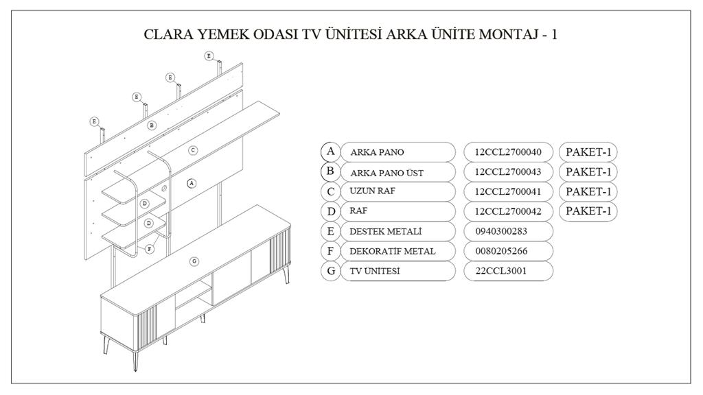 12CCL2700042QRQR, TV. Üni. Arka Ü. Raf/Lena Gri