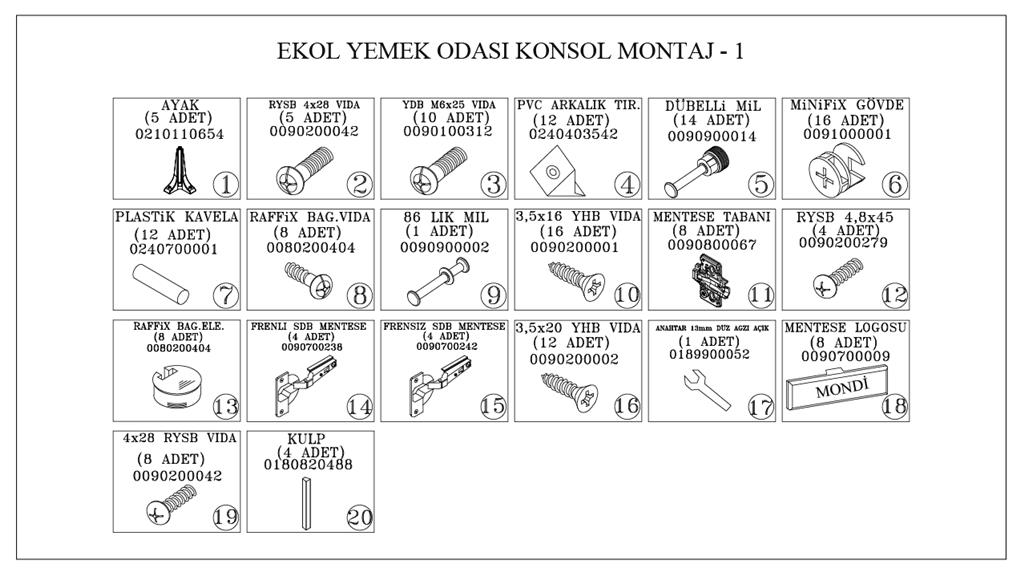 12VTY2700004TRTR, Konsol Orta Dikme/Toros Mese