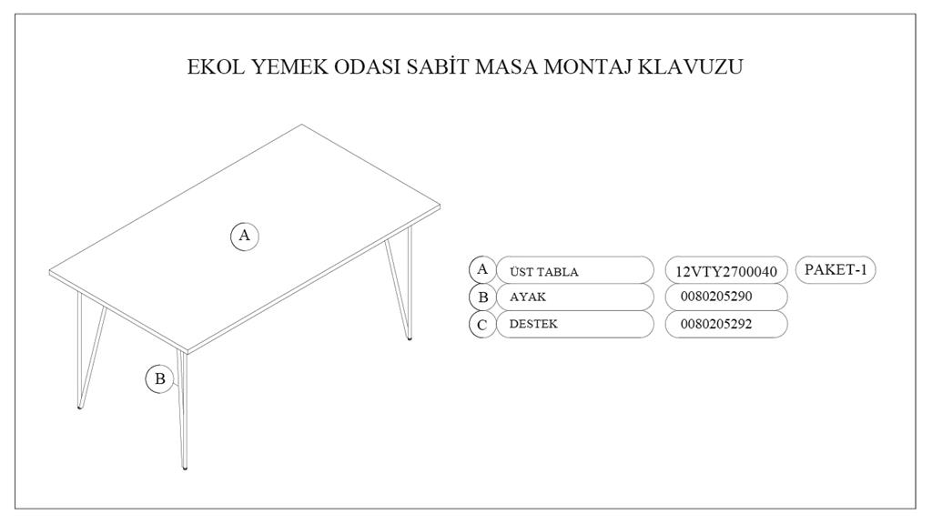 12VTY2700040TRTR, Sabit Masa Üst Tabla/Toros Mese