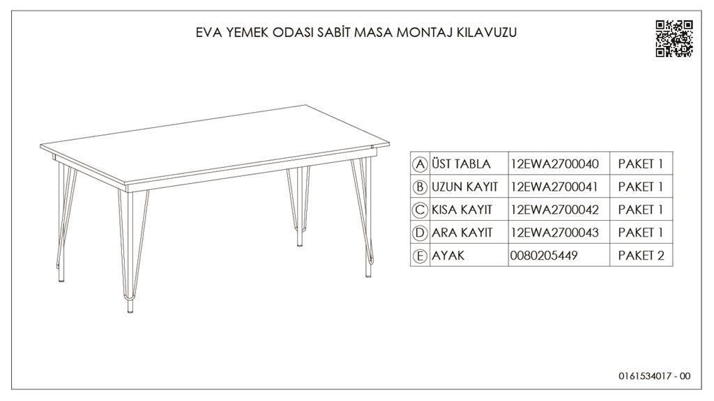 12EWA2700041OBOB, Sabit Masa Uzun Kayıt/Orlnd Syh
