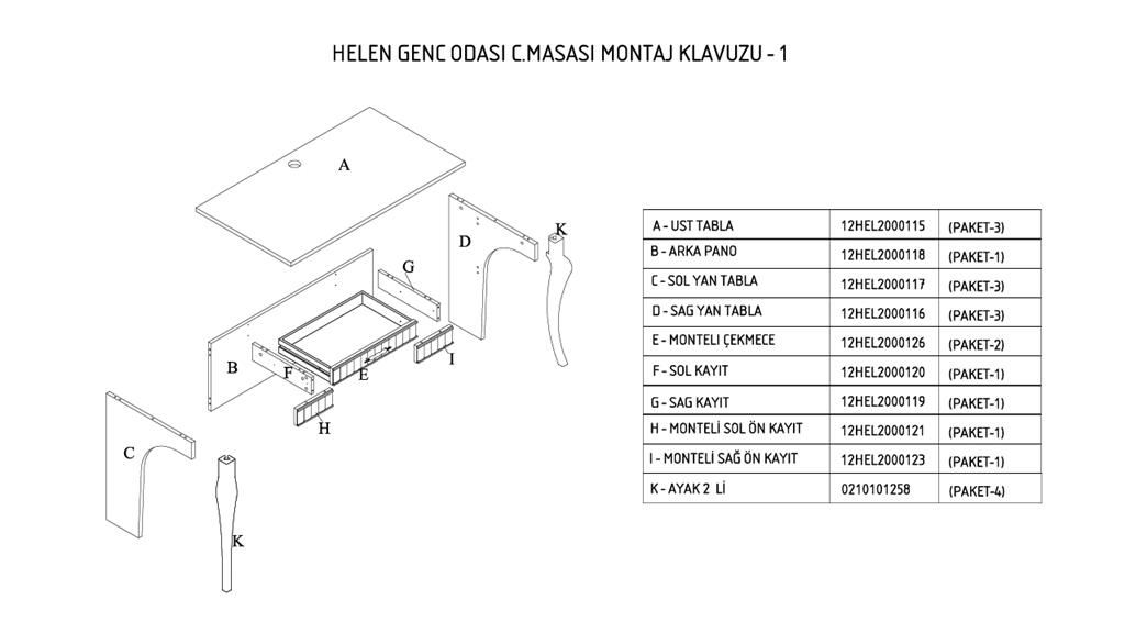 12HEL2000126FSFS, Ç.Masası /Dresuar Mnt Çekmece/Fildisi
