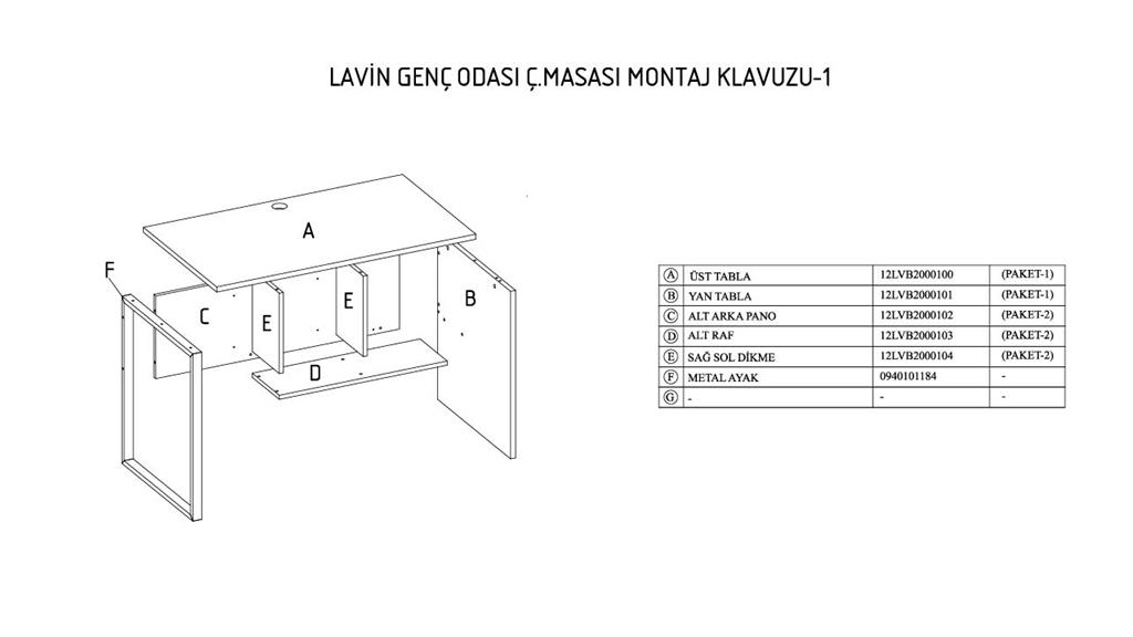 12LVB2000104ZEZE, Ç.Masası Sağ Sol Dikme/Prada Gri