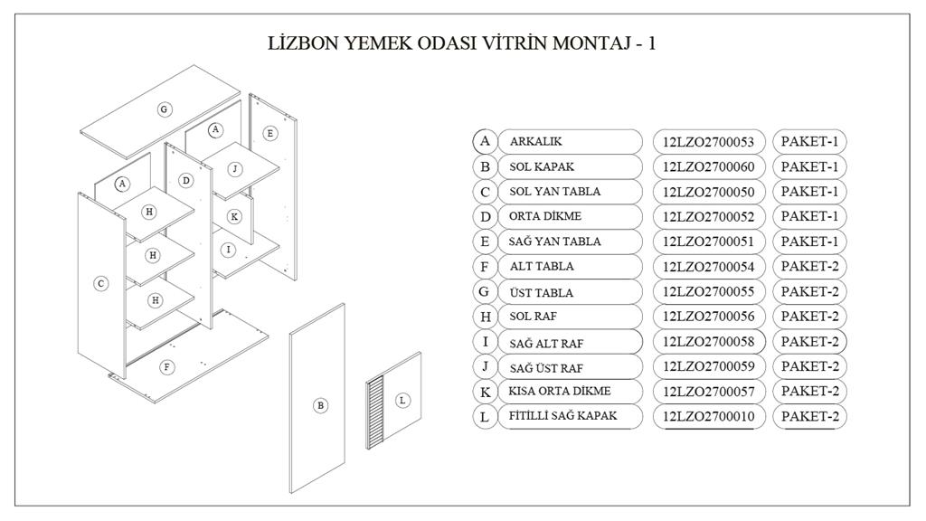 12LZO2700050HZHZ, Vitrin Sol Yan Tabla/Retro Mese