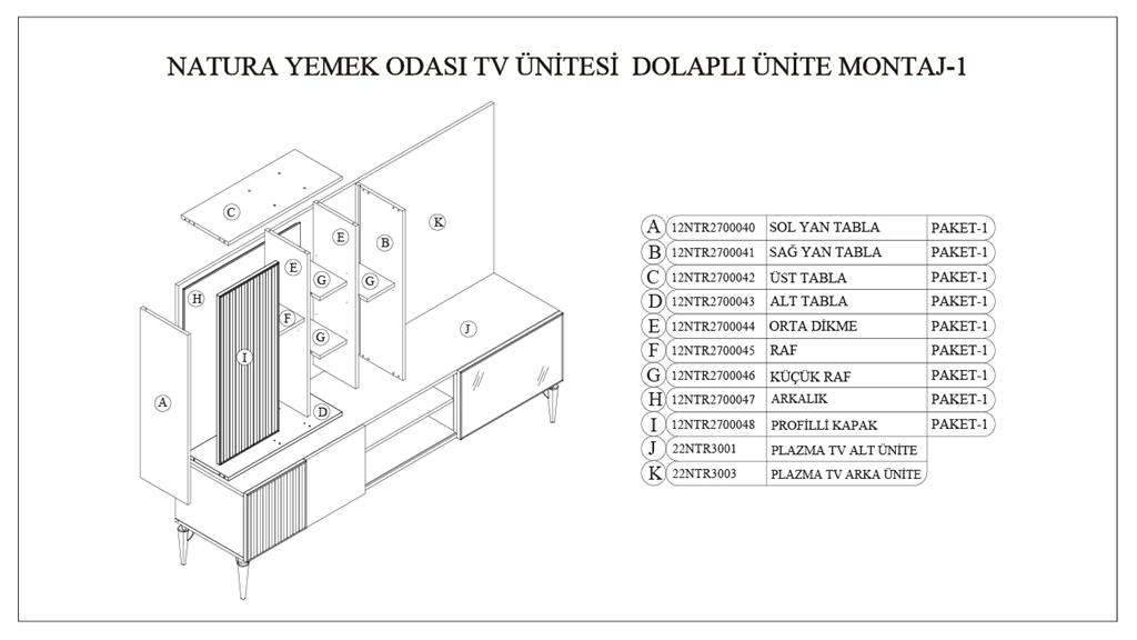 12NTR2700046ZEZE, Plazma TV Dlp.Ü. Küçük Raf/Prada Gri
