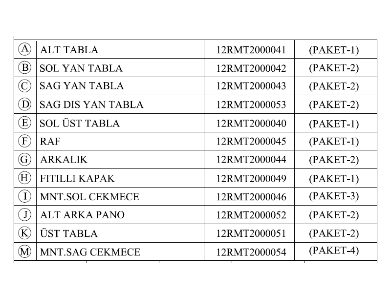 12RMT2000052AWAW, T.MASASI T.MS. ALT ARKA PANO / HG.BEYAZ