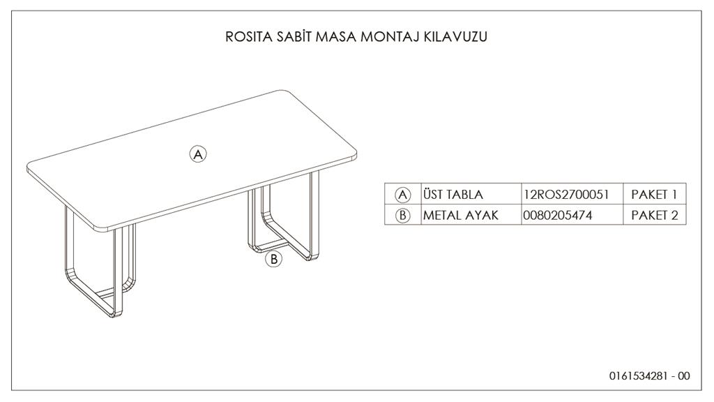 12ROS2700051FSFS, Sabit Masa Üst Tabla/Fildisi