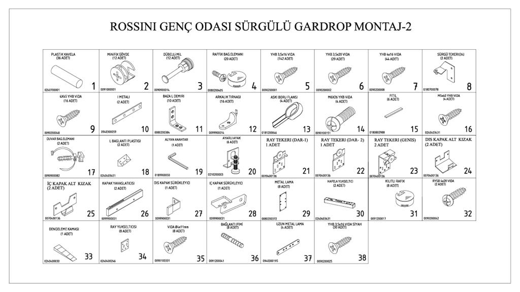 0180700078, TEKER SÜRGÜLÜ KAPAK GARDROP 2 Adet ( 8/33 )