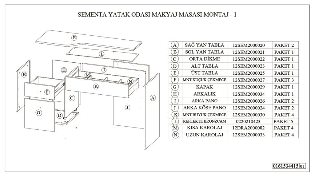 12DRA20000820000, MAKYAJ MASASI KISA KAROLAJ/HAM