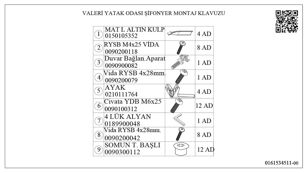 12VAL2000048PDPD, Şifonyer-Komodin Mnt.Alt Çekm./Kumt.