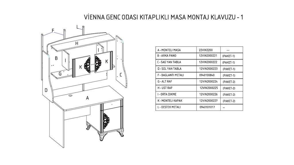 12VIN2000224FSFS, Ç.Mas.Kitplık Üst Alt Raf/Fildisi